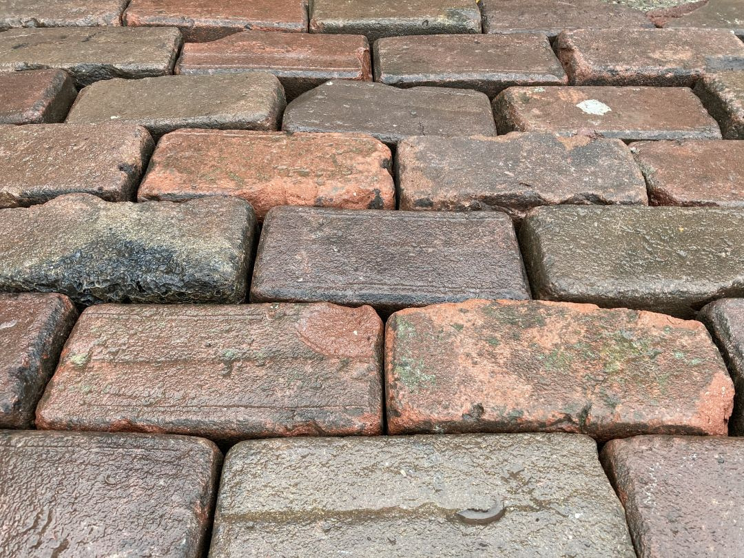 P081, Oude Gebakken Klinkers, Keiformaat, Rood-Bruin